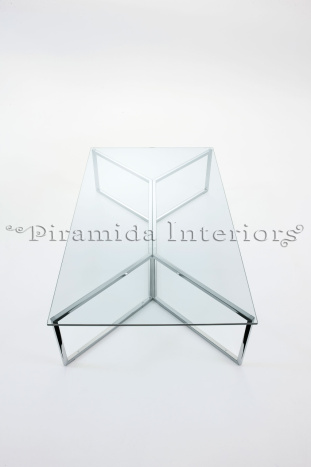 Журнальный стол прямоугольный со столешницей из прозрачного стекла 12 мм.
