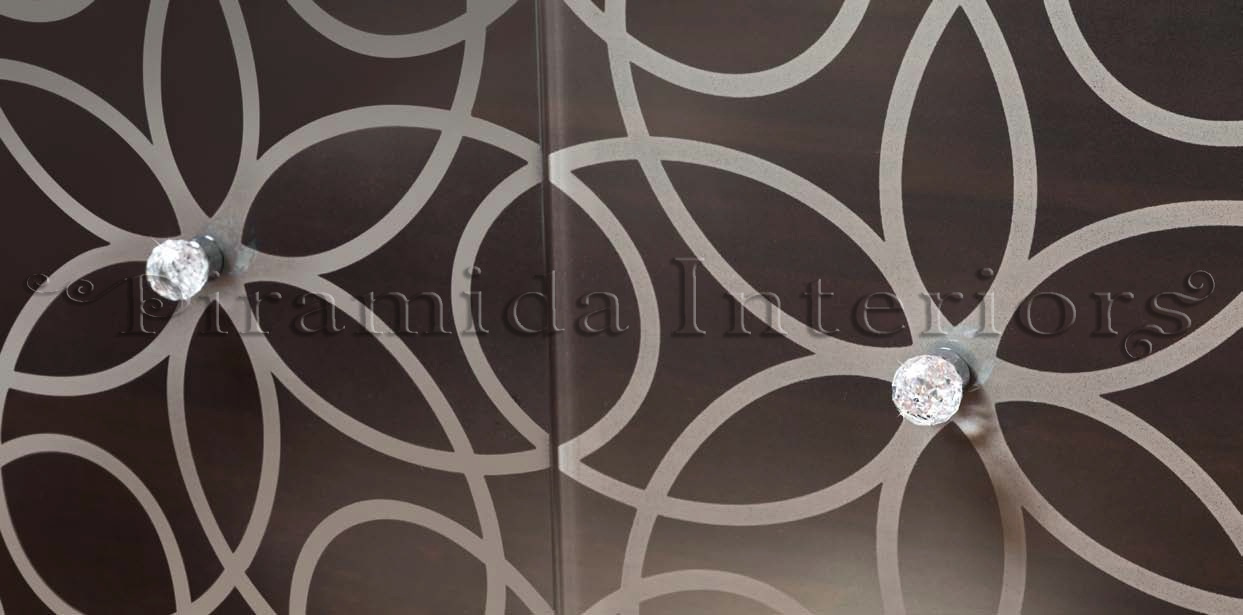 Буфет с 4-мя стеклянными дверцами, полки выполнены из стекла, ручки декорированы стразами Swarowski.